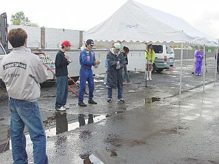 午前中 練習走行までは晴れていたのに 昼 参加者全員の焼肉中 突如として大粒の雨が・・・