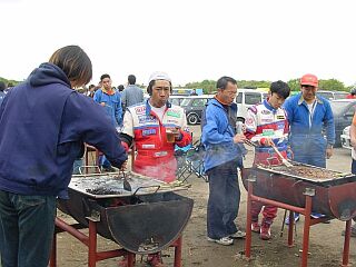ドライバーとクルーには焼肉付き (タケノコも) |
