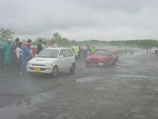 雨後のコース状況がちょっと心配・・・・・・・ | ?白ミラで一般走行の森さん、しかし速かったよね 皆さんはどう見ました? |